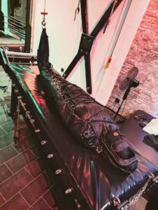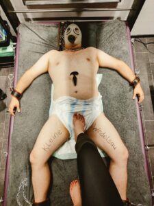 Meine Sessions sind so individuell wie die Sklaven, Femboys, Postboten, Angestellten, Sissys, frechen Studenten, [Younameit] selbst. Einmal kopfüber von der Decke hängen, in Folie gewickelt werden, Atemreduktion erleben, deine feminine Seite entdecken, an meinen Sneakers schnüffeln, scheingeschlachtet werden oder einfach in der Gefängniszelle chillen? Ist so ziemlich alles möglich.